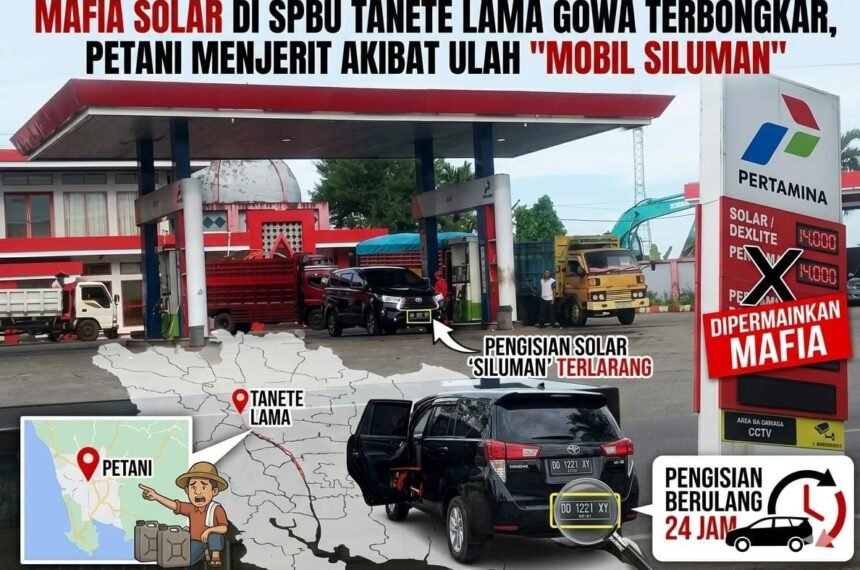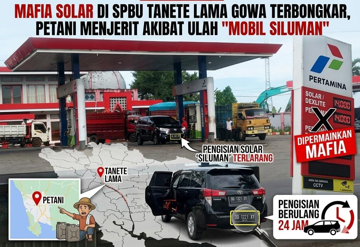 GOWA | POROSRAKYATNEWS.ID – Praktik penyalahgunaan Bahan Bakar Minyak (BBM) bersubsidi jenis solar kembali menjadi sorotan tajam di Kabupaten Gowa. SPBU Tanetea Lama diduga kuat menjadi sarang aktivitas “mobil siluman” yang bekerja sama dengan oknum operator untuk menguras jatah solar subsidi, yang seharusnya diperuntukkan bagi petani dan masyarakat kecil. Aksi ilegal ini mencuat setelah warga...