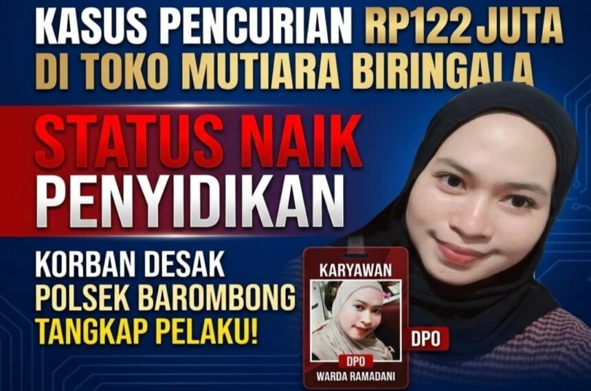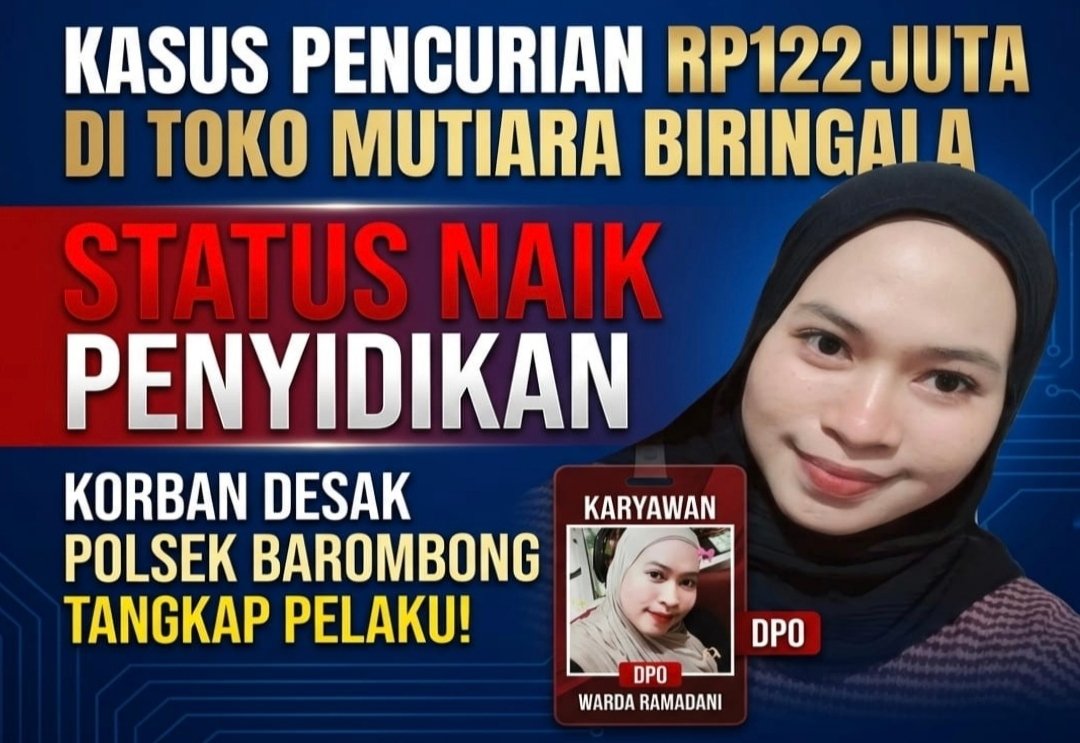 GOWA | POROSRAKYATNEWS.ID – Penanganan kasus dugaan pencurian uang senilai Rp122 juta yang menimpa Toko Mutiara Counter Biringala, Desa Moncobalang, Kecamatan Barombong, Kabupaten Gowa, mulai menunjukkan titik terang. Kapolsek Barombong, Iptu Haidil, mengonfirmasi bahwa status perkara tersebut kini telah resmi dinaikkan dari penyelidikan ke tingkat penyidikan. Meskipun menunjukkan progres, pihak pelapor, Syaputra Yanto, mengaku masih...
