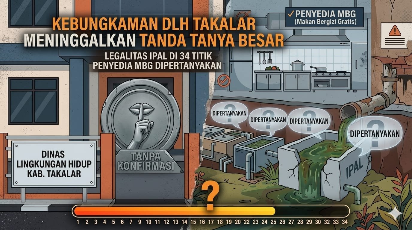 Upaya konfirmasi yang dilakukan awak media pada Rabu (15/04) di Dinas Lingkungan Hidup (DLH) Kabupaten Takalar tidak membuahkan hasil yang memuaskan. Kepala Dinas LH hanya memberikan keterangan singkat mengenai pencabutan 6 izin MBG tanpa merinci alasan teknis maupun status 30 titik sisanya.