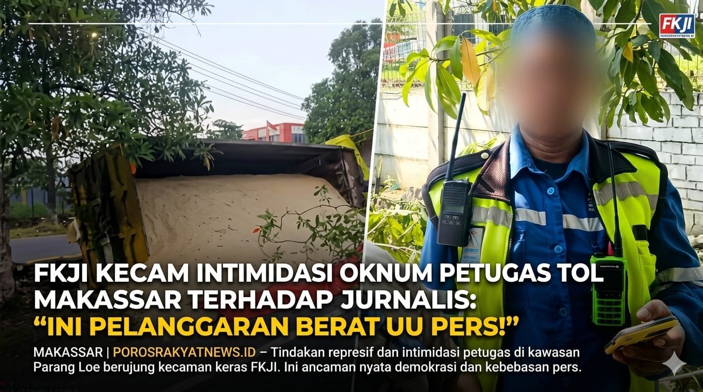 MAKASSAR | POROSRAKYATNEWS.ID – Tindakan represif dan intimidasi yang diduga dilakukan oleh oknum petugas Jalan Tol Ir. Sutami, kawasan Parang Loe, Makassar, terhadap awak media berbuntut panjang. Forum Komunikasi Jurnalis Indonesia (FKJI) melayangkan kecaman keras dan menilai insiden tersebut sebagai ancaman nyata terhadap demokrasi serta kebebasan pers di Indonesia.