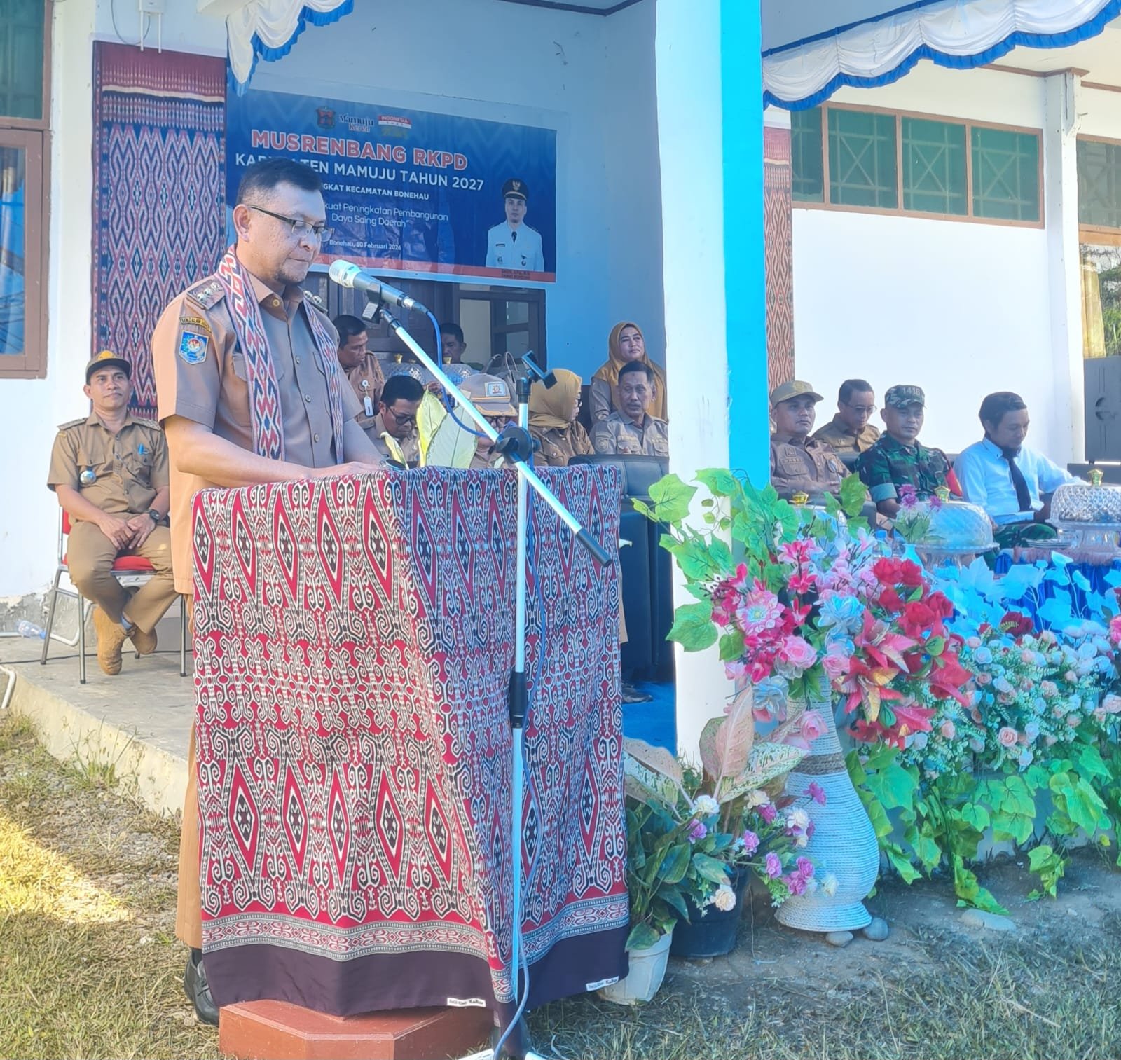 Acara ini dihadiri langsung oleh Wakil Bupati Mamuju, Yuki Permana, yang didampingi Kepala Badan Perencanaan Pembangunan Daerah (Bappeda) H. Budianto Muin, jajaran Kepala Organisasi Perangkat Daerah (OPD) Kabupaten Mamuju, Camat Bonehau, unsur pimpinan Kantor Urusan Agama (KUA), Danramil Poskamling (Danpos), Personel Pembinaan Masyarakat (Binmas), serta seluruh Kepala Desa dan tokoh masyarakat se-Kecamatan Bonehau.