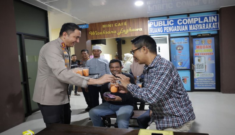ɢᴏᴡᴀ | ᴘᴏʀᴏsʀᴀᴋʏᴀᴛɴᴇᴡs.ɪᴅ – polres Gowa, AKBP Muhammad Aldy Sulaiman, menggelar makan siang penuh keakraban bersama sejumlah pengemudi bentor di halaman GOR Sungguminasa, Jalan Masjid Raya, Keca...