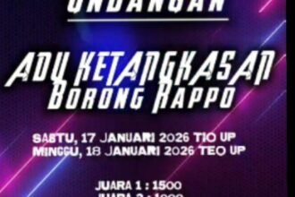 ɢᴏᴡᴀ | ᴘᴏʀᴏsʀᴀᴋʏᴀᴛɴᴇᴡs.ɪᴅ – Sebuah undangan yang mengklaim “Meriahkan Tahun Baru 2026” dengan acara bernama “Adu Ketangkasan Borong Rappo” telah beredar luas di Desa Borong Rapopo, Kecamatan Bontomarannu, Kabupaten Gowa.