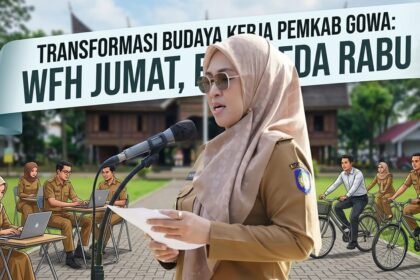 GOWA | POROSRAKYATNEWS.ID – Pemerintah Kabupaten Gowa, Sulawesi Selatan, resmi melakukan terobosan dalam sistem kerja Aparatur Sipil Negara (ASN). Mulai April 2026, Pemkab Gowa memberlakukan sistem kerja dari rumah atau Work From Home (WFH) setiap hari Jumat dan mewajibkan penggunaan sepeda atau motor setiap hari Rabu.